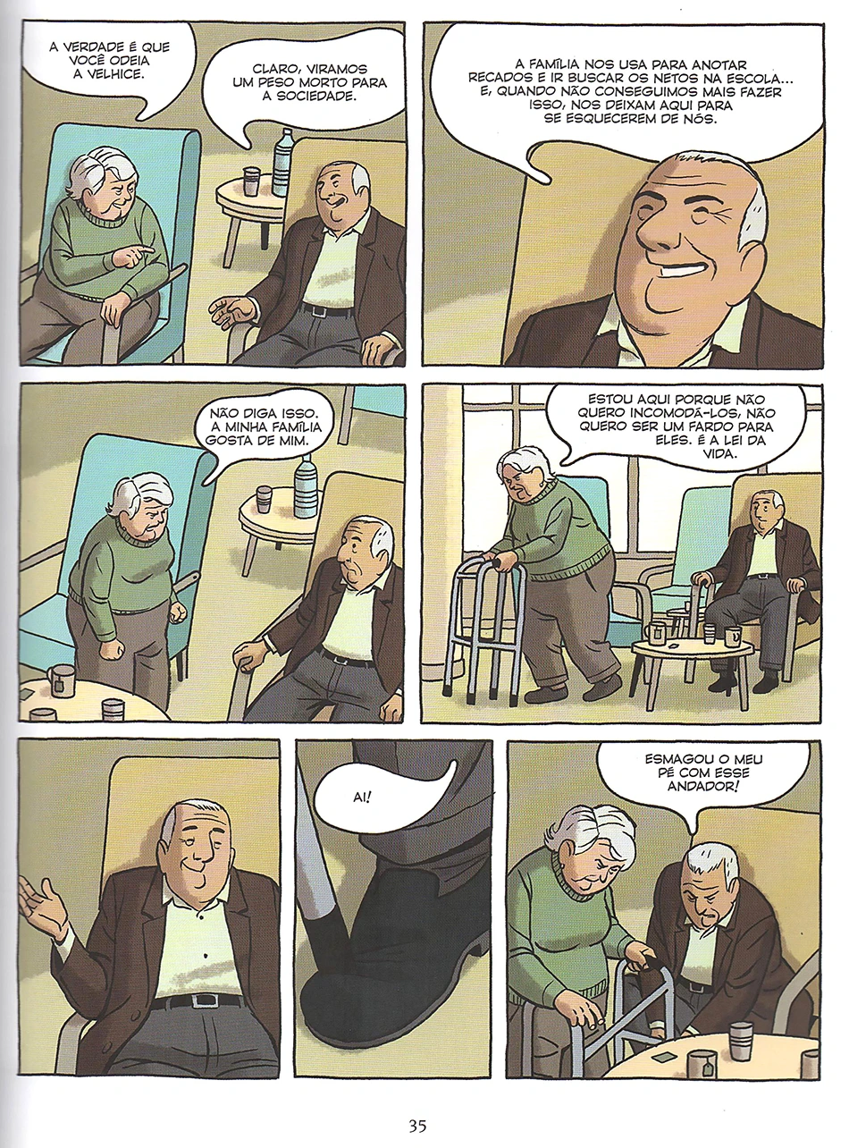 Rugas é uma graphic novel do quadrinista espanhol Paco Roca e retrata uma condição humana ao mesmo tempo tão conhecida e tão menosprezada: a velhice. E esse aspecto foi o que mais me interessou ao adquirir essa hq, já que não vemos muitas histórias em quadrinhos sobre essa temática. O autor costuma abordar assuntos muito inerentes às situações e comportamentos humanos em suas narrativas, o que torna suas obras tão cativantes e sensíveis.